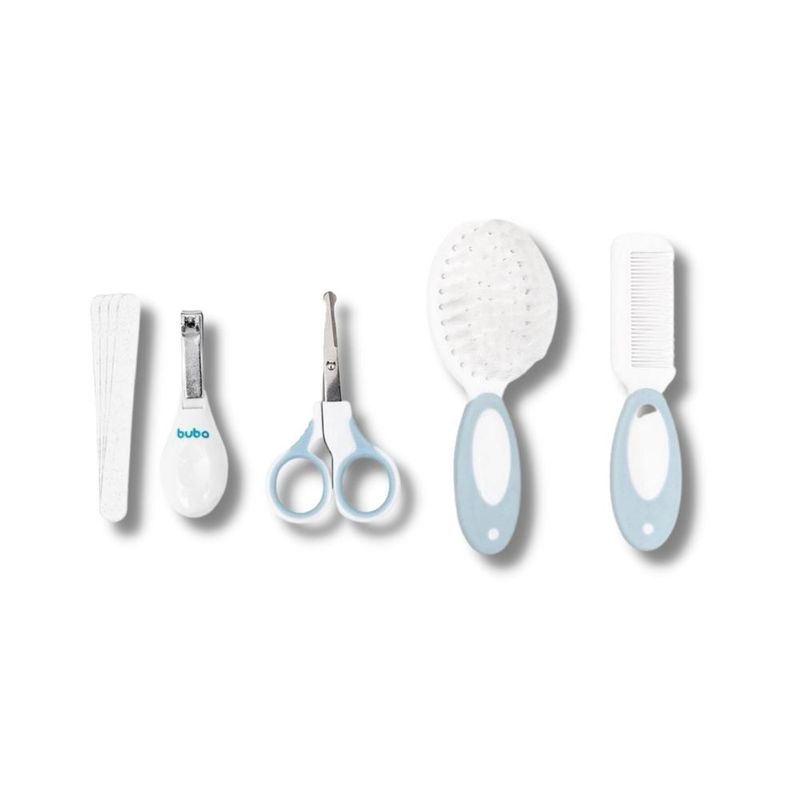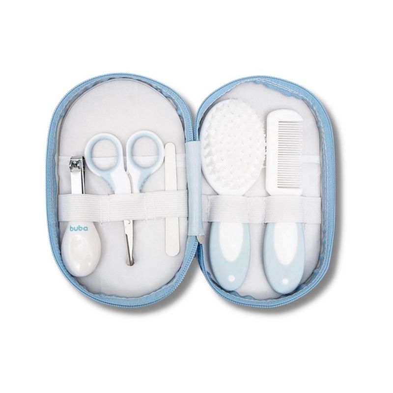 A preocupação com o bem-estar do bebê começa logo nos primeiros dias de vida. Pensando no conforto do pequeno e na tranquilidade dos pais, a Buba desenvolveu uma linha especial para cuidar com delicadeza e segurança da saúde dos pequenos. O Kit Cuidados com Estojo possui uma pequena tesoura de unhas com pontas arredondadas, cortador, pente, escova e lixas em um estojo super prático para armazenar e transportar em viagens.
