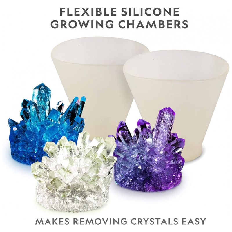 CRESCER É FÁCIL Instruções fáceis de seguir e 2 câmaras de cultivo de silicone tornam o cultivo de seus cristais mais fácil do que nunca. Nossas novas sementes de cristal transparente podem ser deixadas em seus delicados cristais, e os cristais cultivados podem ser colocados diretamente em seu display