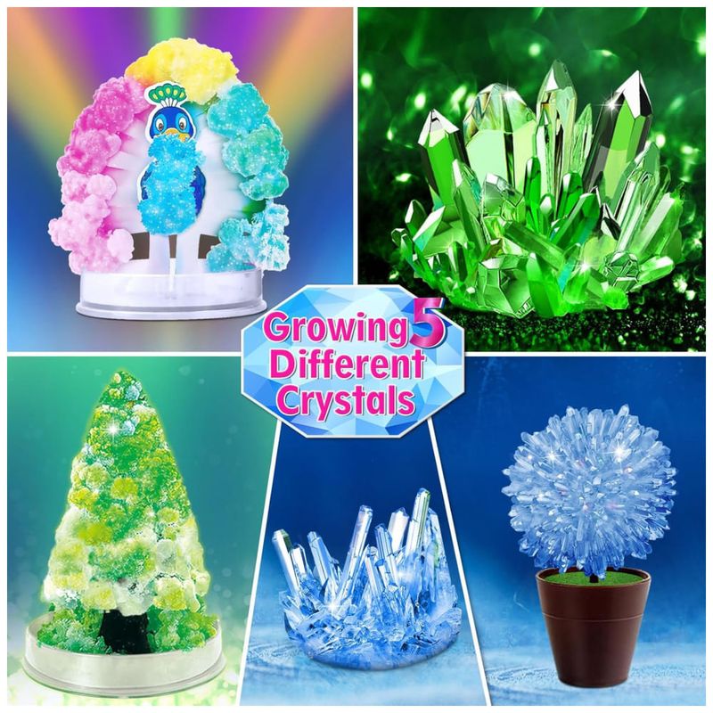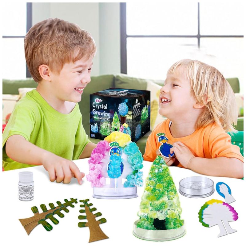 Este kit de experimentos de crescimento de cristal é uma maneira divertida e segura de ensinar às crianças sobre cristais e reações químicas. Ele inclui 2 cristais, uma árvore de Natal de cultivo de cristal, um pavão de cristal e uma planta de cristal. Com instruções fáceis de seguir, este kit vem com suprimentos que tornam mais fácil ensinar e aprender sobre o crescimento de cristais. É uma ótima ideia de presente para pequenos cientistas que desejam explorar o fascinante mundo da ciência. O conjunto é recomendado para crianças e requer supervisão constante de um adulto. Os materiais utilizados são seguros e de alta qualidade, proporcionando experimentos naturais baseados em química adequada.