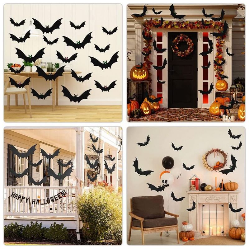 Decorações 3 em 1: Nossa decoração de Halloween de morcegos pode ser usada de 3 maneiras. Pendurar árvores ao ar livre, pendurar dentro de casa ou colar na janela, porta, parede, garagem etc. Todos os acessórios que você precisa estão incluídos no produto.