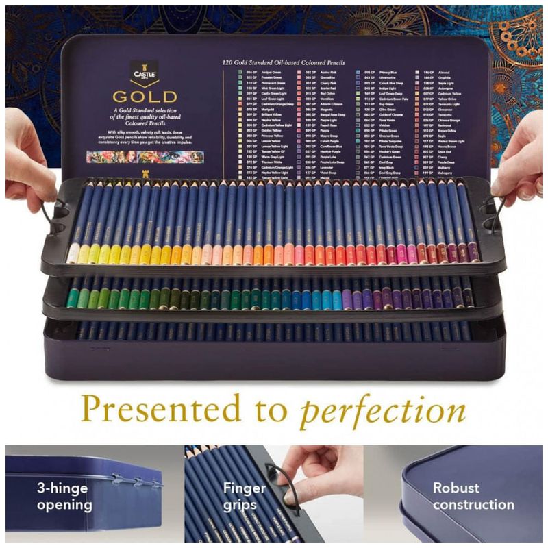 FEITO PARA EXCEDER Nosso conjunto de lápis de cor profissional emblemático, a escolha final de 120 cores, nomeada, numerada em famílias de cores para escolher o tom perfeito basta virar sua escolha entre as camadas na caixa de lata protetora lindamente presenteável.