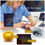 REALIZAÇÃO CRIATIVA Controle superior sobre camadas de cores, capacidade de mesclagem exclusiva, melhor para áreas altamente detalhadas, cobertura de cores excepcional, polimento para tons mais ricos e profundos, maior duração com mais tempo de coloração entre a nitidez.