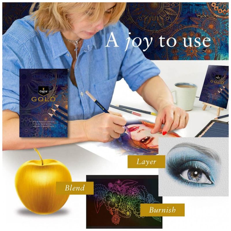 DESEMPENHO TIP TOP Lápis de desenho colorido formulado com óleo para maior dureza, o núcleo vibrantemente pigmentado envolto em basswood de grão fino, pode ser afiado para um ponto mais fino e duradouro com maior resistência à quebra mesmo se cair.