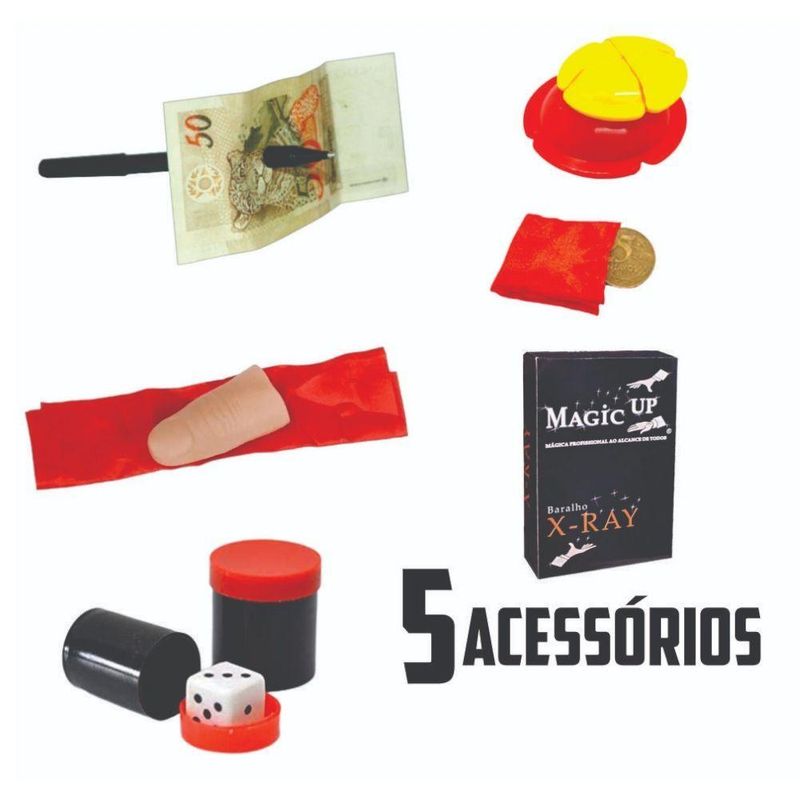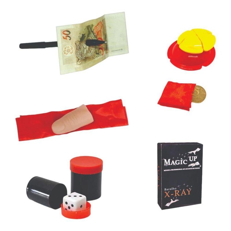 Kit Magic Box Ilusion StarterUm incrível kit de mágica com os famosos ilusionistas Henry Vargas e Klauss Duraes, os mágicos do Fantástico na TV Globo.Você receberá 5 produtos de mágica, todos com vídeo explicativo. São eles:1 - Caneta que Fura: Uma caneta que transpassa uma cédula de dinheiro, com o público vendo a ponta atravessada do outro lado da nota. Uma vez que a caneta é retirada, a cédula de dinheiro está intacta e não apresenta nenhum traço de furo ou rasgo. Os expectadores poderão examinar, fantástico!!! Não pode faltar em seu repertório.2 - Dado Misterioso: Um número de um dado é escolhido ao acaso pelo espectador. O dado é colocado de volta dentro de uma caixinha depois dentro de uma caixa maior. O mágico, que está em uma outra sala ou de costas para o público durante a escolha fica impossibilitado de saber o número escolhido. Entretanto, como por telepatia, ele adivinha o número escolhido pelo seu espectador. Incrível número de mentalismo. Fantástico.3 - Baralho X-Ray: Graças a esse maço de cartas, você poderá realizar dezenas de mágicas. O maço parece ser normal podendo mesmo ser examinado pelo espectador. Qualquer carta escolhida pelo espectador será revelada pelo mágico sem que este toque no baralho.4 - Moeda Viajante: Uma moeda emprestada e assinada por um espectador é colocada na mão do mágico e no mesmo momento este entrega uma caixa surpresa para o espectador. Um passe de mágica e a moeda desaparece da mão do mágico. Ele pede para o espectador abrir a caixa que é fechada com dois elásticos. Ao abrir esta primeira caixa encontra-se uma segunda de tamanho menor e também amarrada por dois elásticos. Abrindo essa segunda caixa e para maior surpresa do espectador encontra-se uma sacola de tecido amarrada com mais um elástico. E por mais incrível que possa perecer a moeda com a própria assinatura do espectador está no interior da bolsa.5 - Dedeira com lenço: Um lenço desaparece entre suas mãos, e depois suas mãos se mostram vazias! Acessório com mil e uma possibilidades. Não pode faltar no seu repertório.Mágicas inclusas:- Nota elevador, Elásticos que entrelaçam, Elástico reconstituido, Anel elevador, Anel no Elástico, Nó que sai e volta, Sal reconstituído, Corda cortada e reconstituída, Nó que anda, Corda sem pontas, Corda que atravessa o pescoço, Carta desobediente, Água e Azeite, Moeda que atravessa a mesa, Casal inseparável, Desafio à fisica, Aparição do lenço, Copo que desaparece, Cartão que levita, Teletransporte da moeda, Celular no Balão, Corda encantada, Desaparição do cigarro, Aparição do BIS, Desaparição do lenço, Book Test, Double lift, Calculadora mágica, Force 01 - 05.Entre no mundo do ilusionismo com os Mestres brasileiros das grandes ilusões.Item incluso:- 5 acessórios de mágica- QR Codes, com acesso a vídeos explicativos.Perguntas frequentes:- Este kit é para qual público? Destinado para crianças que desejam ingressar no mundo da mágica, com faixa etária dos 7 anos- Possui quantas mágicas? 5 produtos, dos quais será possível fazer vários truques.- Emite Nota Fiscal? Sim, nossos produtos acompanham nota fiscal.- Posso devolver caso me arrependa? Sim, você poderá devolver em até 7 dias após o recebimento - Quando o envio é feito? Assim que a venda é confirmada em nosso sistema, será providenciado o envio - Tem pronta entrega? Sim, com a máxima agilidade.