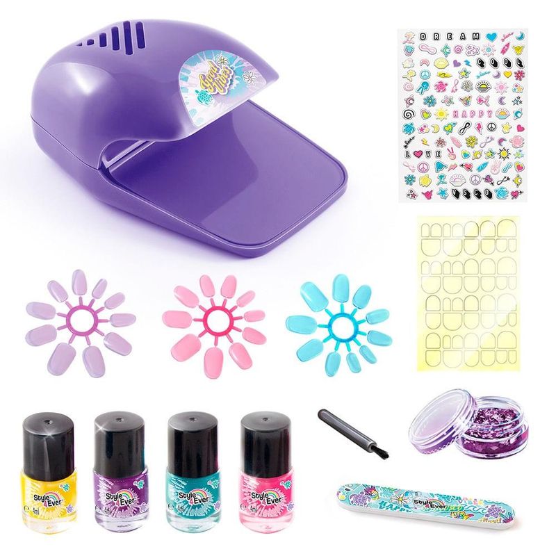 Crie sua arte nas unhas e deixe a imaginação fluir com o Kit Manicure Style 4 Ever! Você quer ter unhas incríveis e personalizadas? Faça seu próprio estilo com este kit de manicure! Um conjunto completo para personalizar suas unhas como desejar, com esmaltes, adesivos, glitter e muito mais. E o melhor de tudo, o secador de unhas está incluso para deixar suas unhas prontas em pouco tempo! Já imaginou criar artes para Unhas como uma manicure profissional? Com o Kit Manicure Profissional Style 4 Ever da Fun Divirta-se, as crianças podem criar e personalizar suas próprias unhas de forma divertida e criativa! Este kit exclusivo permite que elas experimentem diferentes estilos, cores e texturas, proporcionando horas de diversão. Você pode aplicar e adicionar esmalte de unhas, stickers, glitter e até mesmo unhas postiças em plástico. São quatro cores de esmalte para você escolher e combinar, além de um pote de glitter e uma folha de adesivos com mais de 100 stickers diferentes. Você pode usar sua criatividade e fazer as mais variadas combinações. Como funciona o Kit Manicure Profissional Style 4 Ever? O Kit Manicure Profissional Style 4 Ever é muito fácil de usar. Basta seguir os passos abaixo: - Escolha a cor do esmalte que você quer usar e aplique nas unhas. Você pode usar as unhas postiças em plástico se preferir. - Se quiser, adicione stickers ou glitter nas unhas para deixá-las ainda mais bonitas. Use o pincel para glitter para espalhar o brilho. - Coloque as unhas no secador de unhas real que vem no kit e ligue-o. Ele funciona com 3 pilhas 1,5 Volts AA (não inclusas). Espere alguns segundos até que o esmalte seque. - Pronto! Agora você tem unhas lindas e personalizadas! O kit inclui tudo o que é necessário para criar unhas incríveis. As crianças podem aplicar esmalte de unhas, adicionar stickers, brilho e até mesmo secar o esmalte com o secador de unhas real. Basta escolher as cores favoritas, decorar com os adesivos e brilhos, e em pouco tempo as unhas estarão prontas para exibir um estilo único! Porque Adquirir o Kit Manicure Profissional Style 4 Ever? Além de ser uma atividade divertida, o Kit Manicure Profissional Style 4 Ever da Fun Divirta-se faz com que os pequenos possam explorar sua criatividade, aprimorar suas habilidades motoras finas e desenvolver o senso de estilo e estética. Ao criar diferentes designs nas unhas, as crianças também podem expressar sua personalidade única e desenvolver habilidades de tomada de decisão. Além disso, elas podem aprender sobre cores, formas, texturas e cuidados com as unhas. Selo Inmetro: 005351/2021