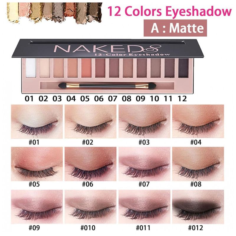 Componentes 12 cores sombra matte, base nude/bege, primer, batons líquidos, eyeliner stamp, máscara, contorno, sabão sobrancelhas, pincel, 2 esponjas