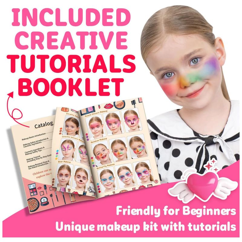 Incentiva a criatividade e o entretenimento: Vem com um livreto de tutorial de maquiagem. Brincar de maquiagem pode ajudar a criança a melhorar a habilidade motora fina, com a menina explorando as belas possibilidades infinitas enquanto desenvolve a criatividade e a imaginação. Proporcione momentos interativos e de entretenimento para a família em que a menina possa fingir que está se maquiando como a mamãe.