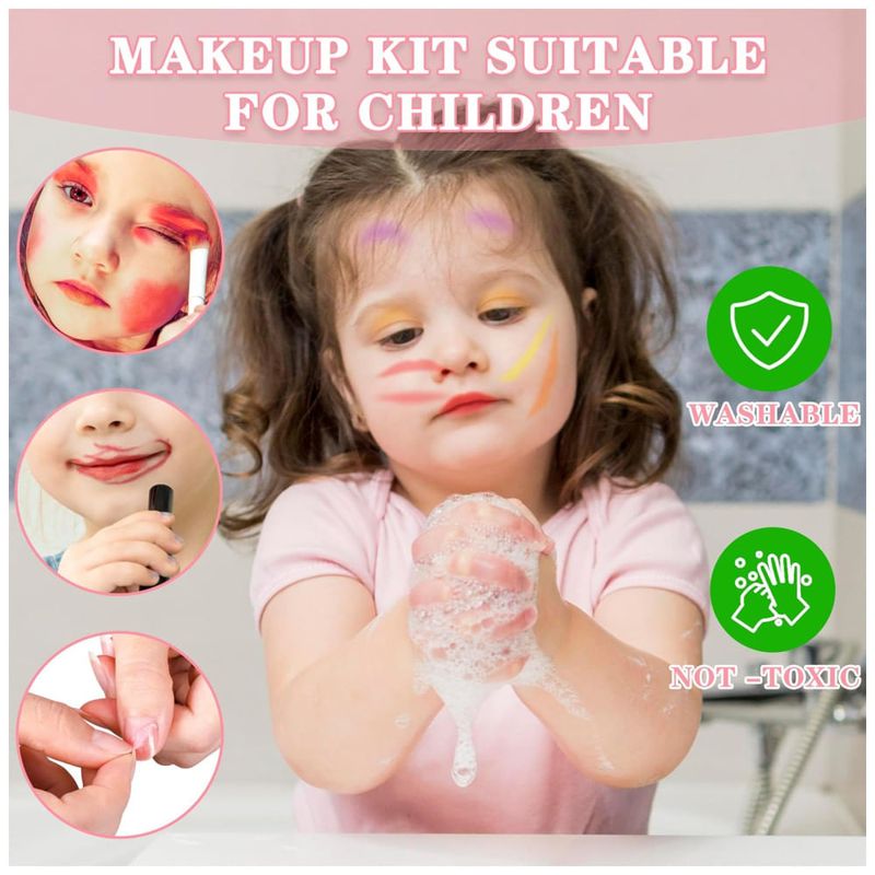 Lavável e sem bagunça: cada cor fica levemente para aquele look bem maquiado sem parecer muito adulto. Fácil de limpar e totalmente lavável com água (e sabão neutro conforme necessário), não há necessidade de maquiagem especial ou removedor de esmalte. E sem medo de manchas no carpete ou marcas de móveis, você pode deixá-la brincar o quanto quiser!
