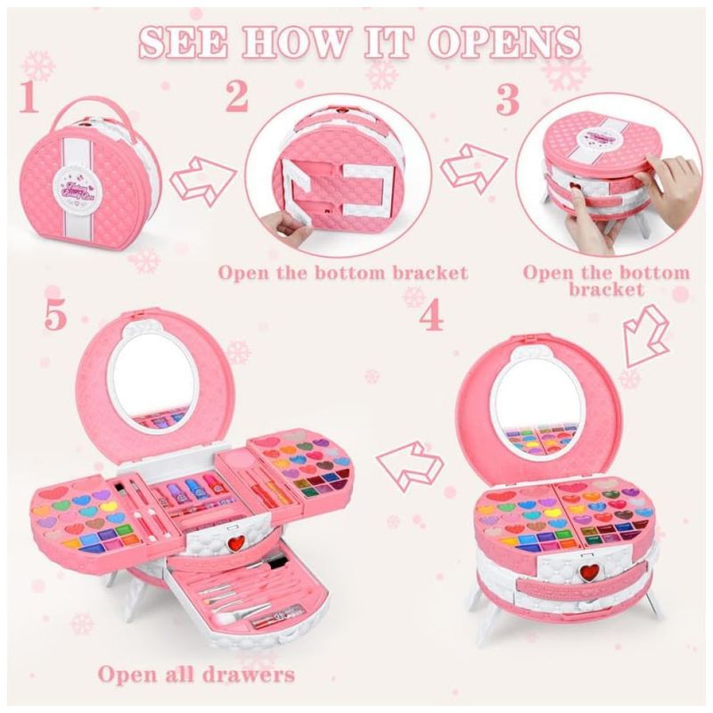 Ótimo presente para meninas: desde fantasias até festas e atividades, ou apenas a hora da princesa, há muitas ferramentas de maquiagem nesta caixa de maquiagem com alça. Aniversário perfeito, Natal, Halloween ou outros brinquedos de presente de feriado para meninas de 3 4 5 6 7 8 9 10 11 12 anos ou mais! Eles podem ter sua própria maquiagem para realizar o sonho da princesa!