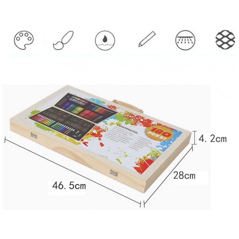 Tamanho da caixa 46,5X28X4,2cm. Conjunto de arte de luxo de 180 peças. Componentes pastéis de óleo, giz de cera, canetas aquarela, pincéis, ferramentas auxiliares.