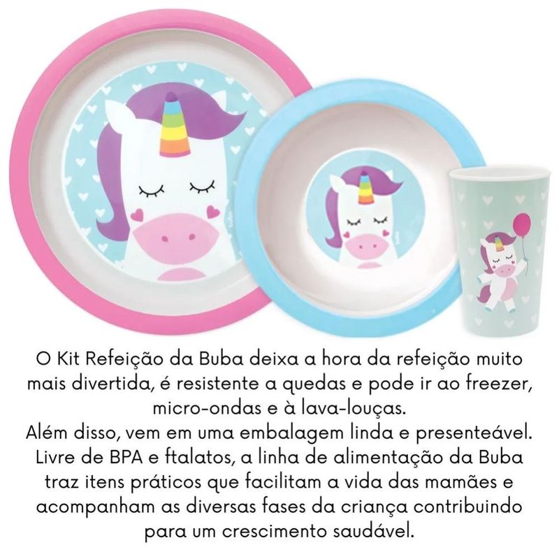 Kit Refeição da Buba deixa a hora da refeição muito mais divertida, é resistente a quedas e pode ir ao freezer, micro-ondas e à lava-louças.