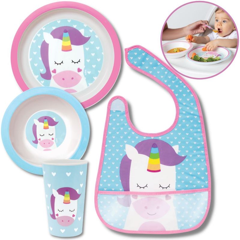 --- Kit de Refeição Infantil Para Bebê De Unicórnio - Pratos , Copo E Babador Para Alimentação - Animal Fun Buba ---