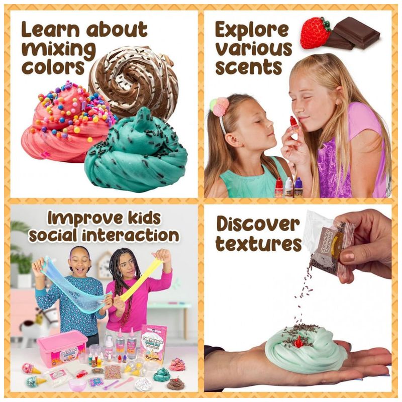 As crianças terão diversão sensorial e sem tela com o kit DIY de slime de sorveteria, que inclui 31 peças para fazer muito slime divertido, de nuvem e de espuma. O kit é um presente de aniversário ideal para meninas a partir de 7 anos, e inclui granulados para criar casquinhas de sorvete e outras criações de slime. Com cores e aromas favoritos de sorvete, as receitas incluídas tornam a criação de vários sorvetes divertidos e fáceis. O kit também pode ser um ótimo presente para o Natal, acompanhado de cartões embalados com envelopes.