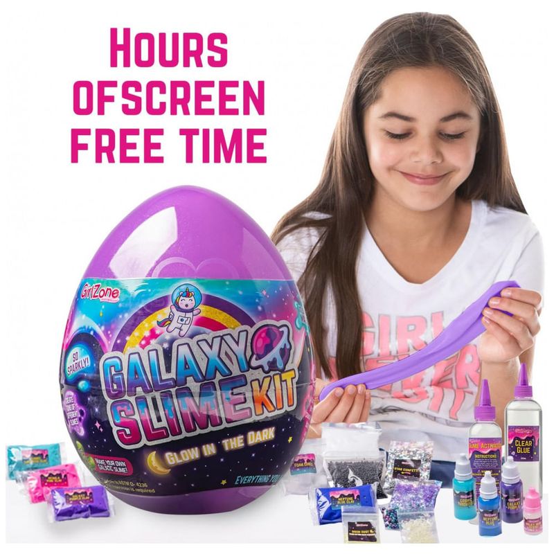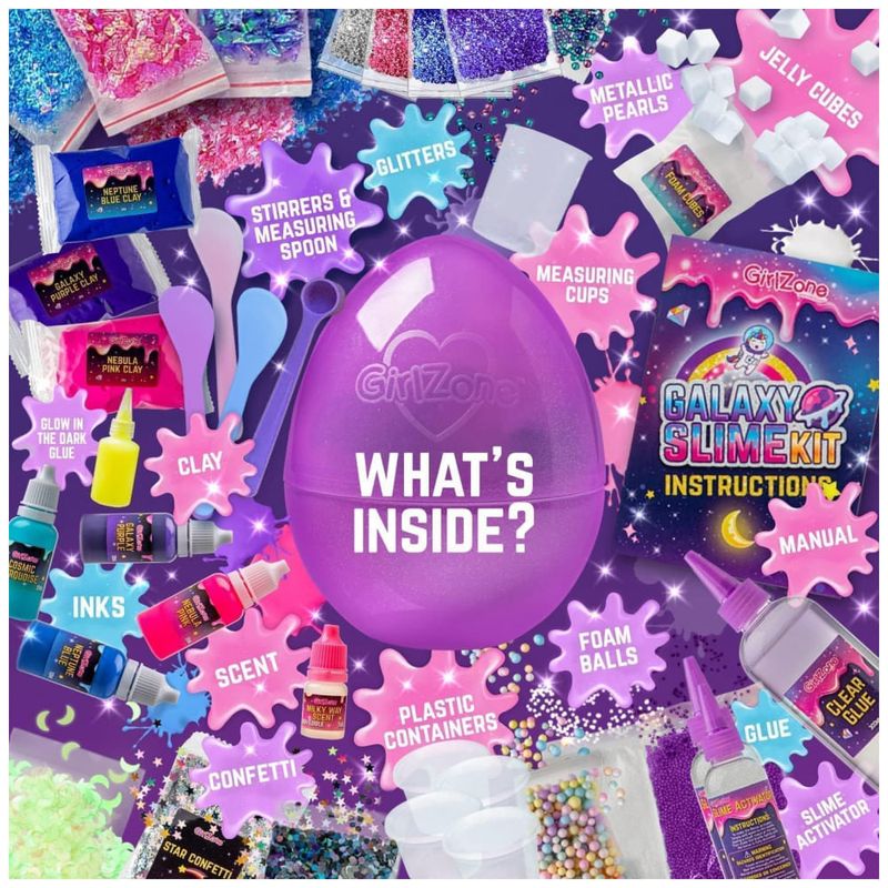 Explore o universo da diversão criativa com o Kit Completo de Slime que Brilha no Escuro para crianças. Este ovo grande inclui tudo o que é necessário para criar slime de marshmallow, slime crocante e slime espacial. Aqui estão os destaques deste incrível kit criador de slime: