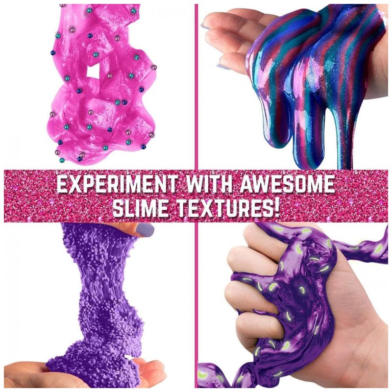 Desfrute de horas de brincadeira sensorial e criativa com mais de 20 complementos legais que transformam seu slime em uma experiência brilhante no escuro. Faça slime de marshmallow, slime crocante e slime espacial com facilidade.