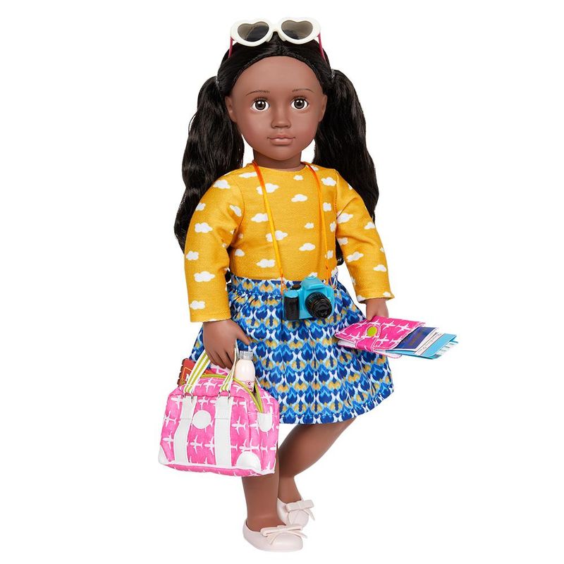 Acessórios de viagem para bonecas de 46cm! Para aventuras divertidas desde o embarque até o passeio pela cidade com esse lindo conjunto de viagem Our Generation! Suas bonecas favoritas se transformarão em sofisticadas viajantes com direito a lanchinhos, baralho de cartas, passaporte, carteira, cartões de embarque, câmera, óculos de sol, produtos de higiene pessoal e uma mala. Cada peça é perfeitamente dimensionada para as bonecas Our Generation. Acessórios faz de conta. Boneca vendida separadamente. Our Generation não se trata apenas de uma boneca, um lindo conjunto de roupas ou mesmo um kit de acessórios fantásticos. É sobre incentivar crianças de todos os estilos e gostos a criar suas próprias histórias, desenvolvendo um universo ilimitado de brincadeiras com bonecas e acessórios. Sua embalagem é feita de material reciclado, especialmente desenvolvida para uma geração mais ecológica que não aceitaria nada menos. Essa é a nossa história, e essa é a nossa turma!