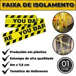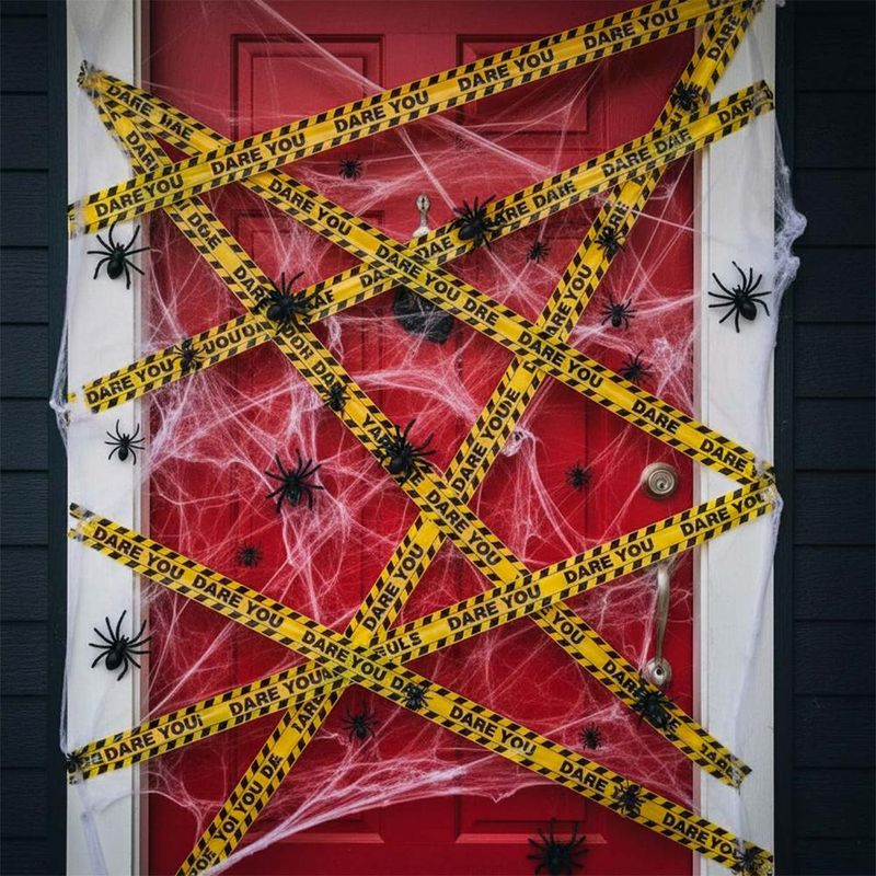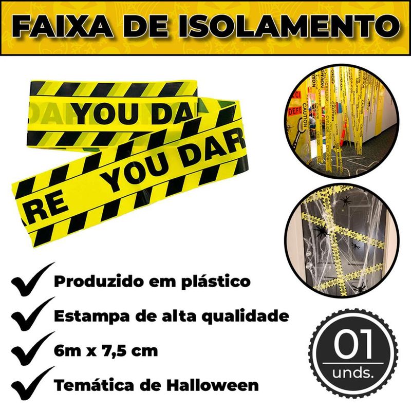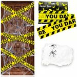 Tamanho Faixa de Isolamento "You Dare": 6 metros de comprimento x 7,5 centimetros de largura. Teia de aranha: 20 gramas