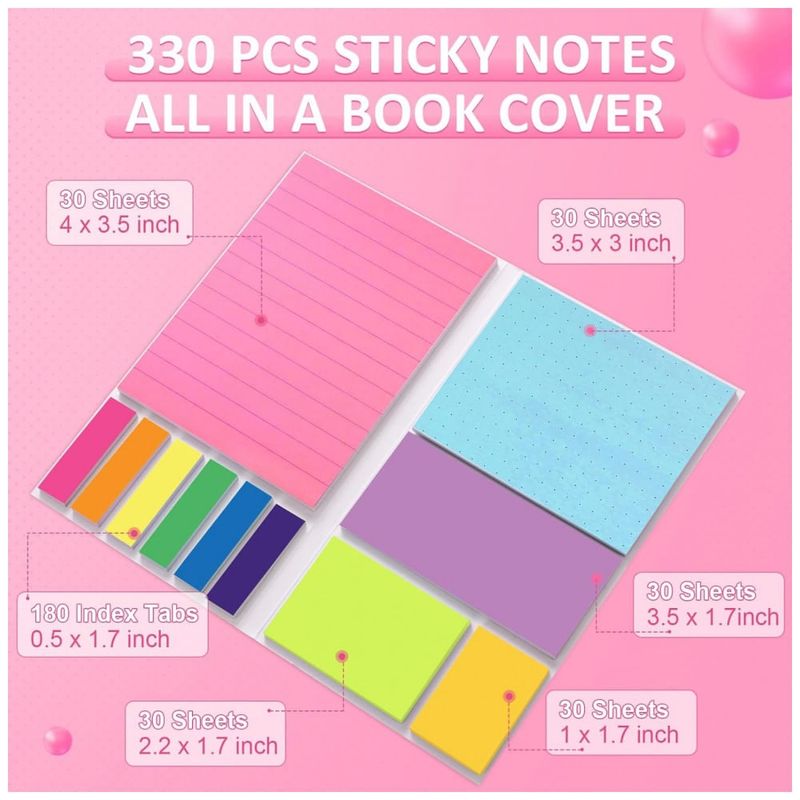 1 conjunto de notas adesivas com 330 folhas em formatos variados
