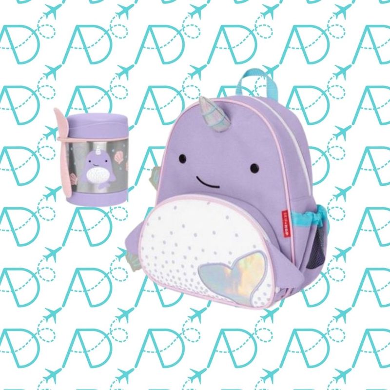 Kit Escolar Mochila Pote Termico Baleia Narval Zoo Skip Hop