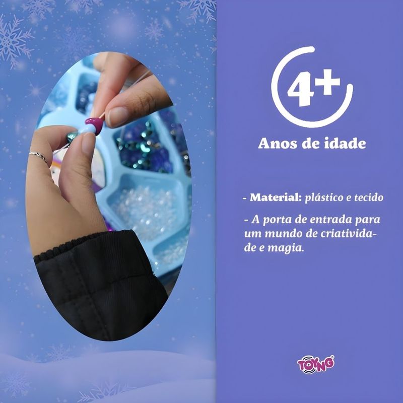As crianças dão vida ao mundo da criatividade com os conjuntos de pulseiras e colares da Anna e Elsa. Elas podem criar, sonhar, compartilhar e fazer de novo! No melhor estilo “DIY (Do It Yourself - Faça Você Mesmo), as crianças podem criar variações de pulseiras e colares ao seu gosto.