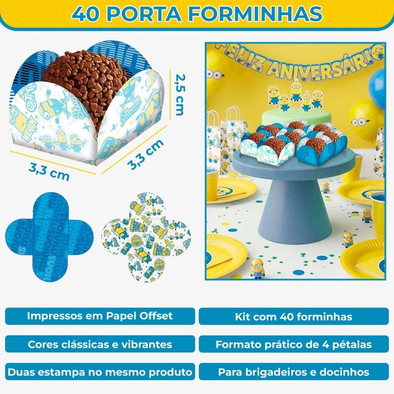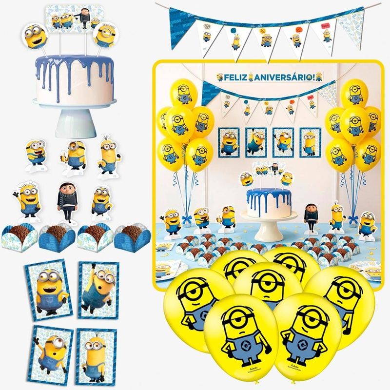A diversão contagiante dos Minions, pronta para a sua festa em minutos! Preparar a festa de aniversário dos pequenos pode ser um desafio, mas a decoração não precisa ser! Se o seu filho ama as aventuras e confusões do Gru e seus ajudantes amarelos, o Kit Festa Minions Oficial Festcolor é a solução perfeita. Composto por 62 itens essenciais, este kit foi montado para garantir que você tenha tudo o que precisa para uma mesa de parabéns completa, padronizada e cheia de alegria, economizando tempo e dinheiro. Você pode estar se perguntando: "Será que esse kit dá trabalho para montar?" ou "O material é resistente?". A resposta é: praticidade e qualidade são os maiores diferenciais aqui. Os itens de papelaria são impressos com alta qualidade em papel cartão e offset, trazendo cores clássicas e vibrantes que não desbotam. As peças de mesa e bolo já vêm recortadas e prontas para uso, com bases dobráveis para ficarem em pé sozinhas. Além disso, os balões inclusos são de látex ultra resistente, reduzindo o risco de estouros na hora de encher. É só abrir, montar e curtir a festa!Custo beneficio Temática Coerente Facilidade de Montagem Economia Qualidade e Segurança Variedade de Itens Design Atraente ATENÇÃO: O kit é lacrado original de fábrica - não permite alterar quantidades ou cores dos itens!
