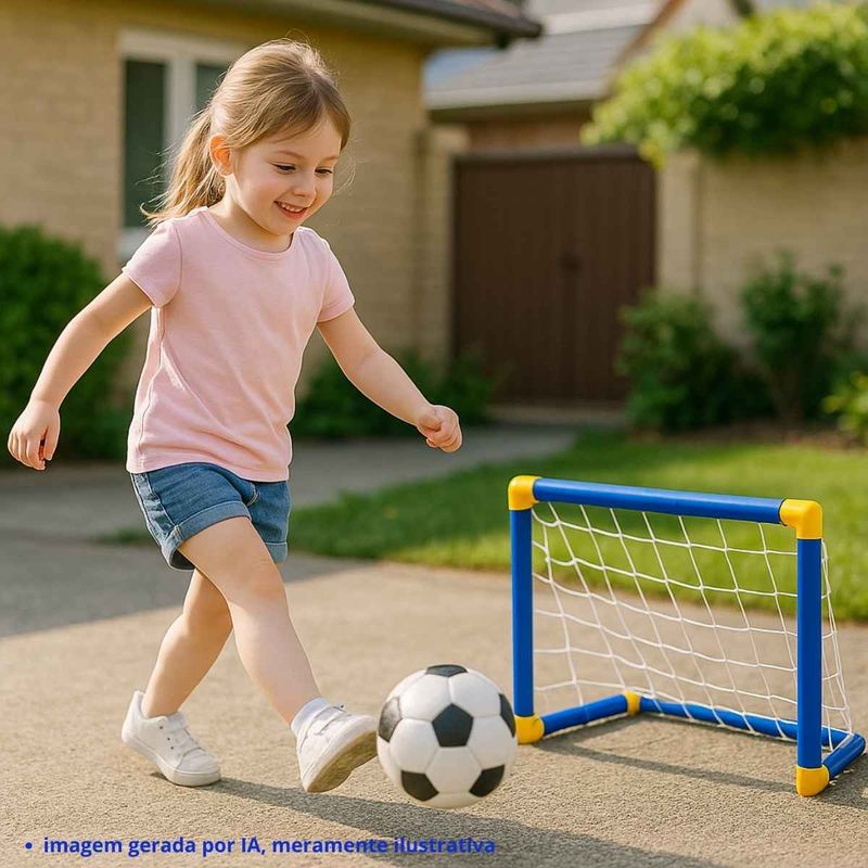 A trave é fácil de montar e desmontar, feita com materiais resistentes e leves, garantindo segurança e praticidade. A bola tem o tamanho ideal para os pequenos jogadores e pode ser inflada com a bomba inclusa, tornando o kit completo e pronto para a diversão.