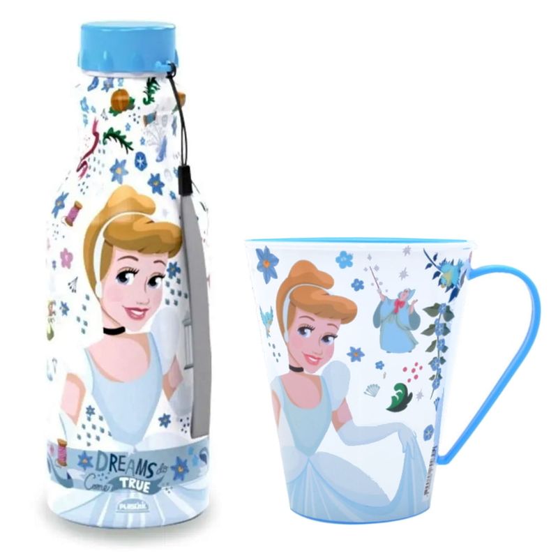 Kit Garrafa 500ml Retro e Caneca Estampada da Ciderela - Plasútil