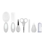 Os kits de higiene da Pimpolho foram pensados visando, principalmente, a segurança e a praticidade. Acabamento fino e sem rebarbas, pontas arredondadas e design anatômico. Possui escova com cerdas macias e pente com dentes abaulados, ambos com cabo emborrachado, tesoura com pontas arredondadas, cortador de unha com cabo anatômico e lixa feita em vidro, mais resistente, durável e segura que as lixas de papel e metal. Além disso, esse kit vem com massageador de gengiva e aspirador nasal, para completar a higiene do bebê.