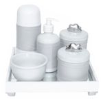 Kit Higiene Espelho Completo Porcelanas, Garrafa Pequena e Capa Nuvem Prata