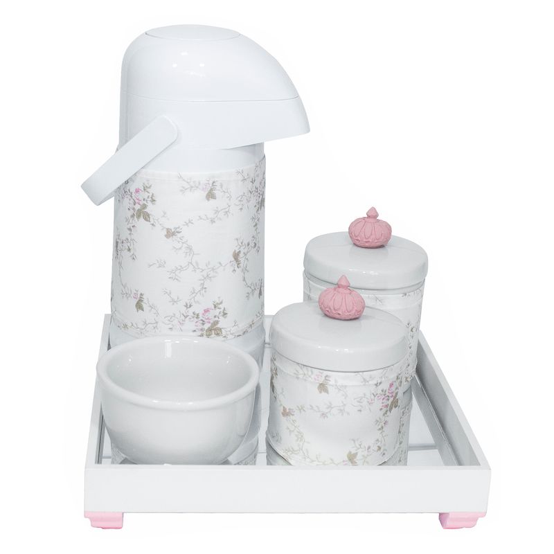 Kit Higiene Espelho Potes, Garrafa, Molhadeira e Capa Coroa Rosa