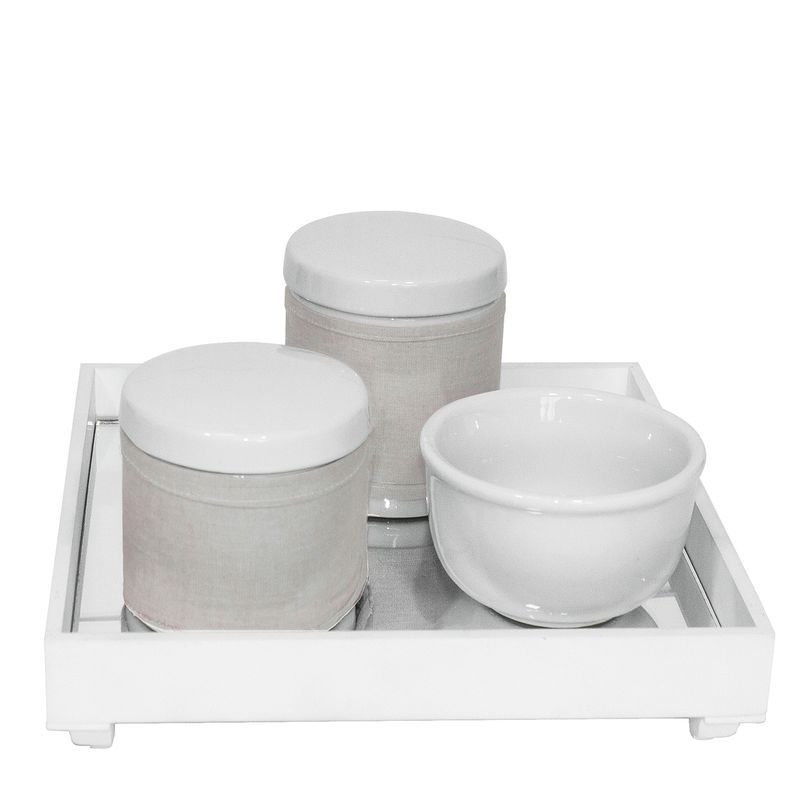 Kit Higiene Espelho Potes, Molhadeira e Capa Branco