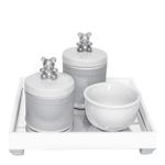 Kit Higiene Espelho Potes, Molhadeira e Capa Ursinho Prata