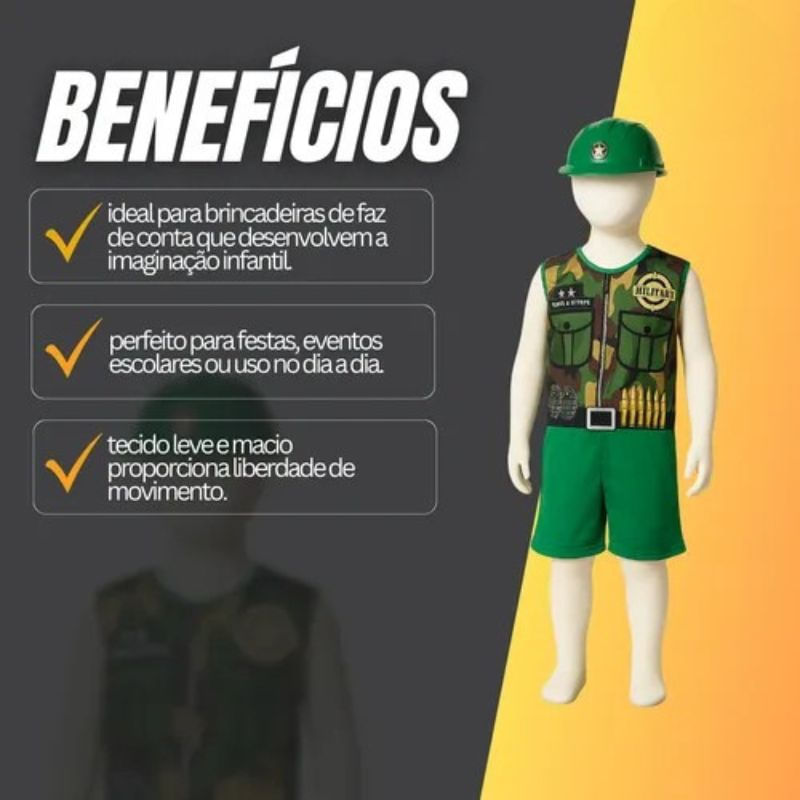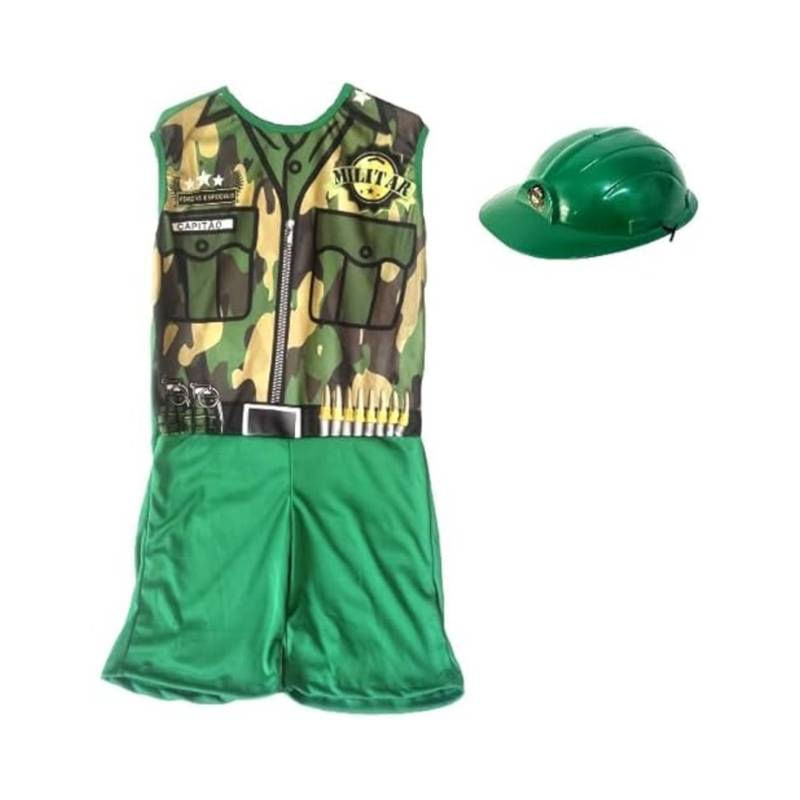 Kit Infantil Fantasia Militar G de 10 a 12 Anos Carnaval