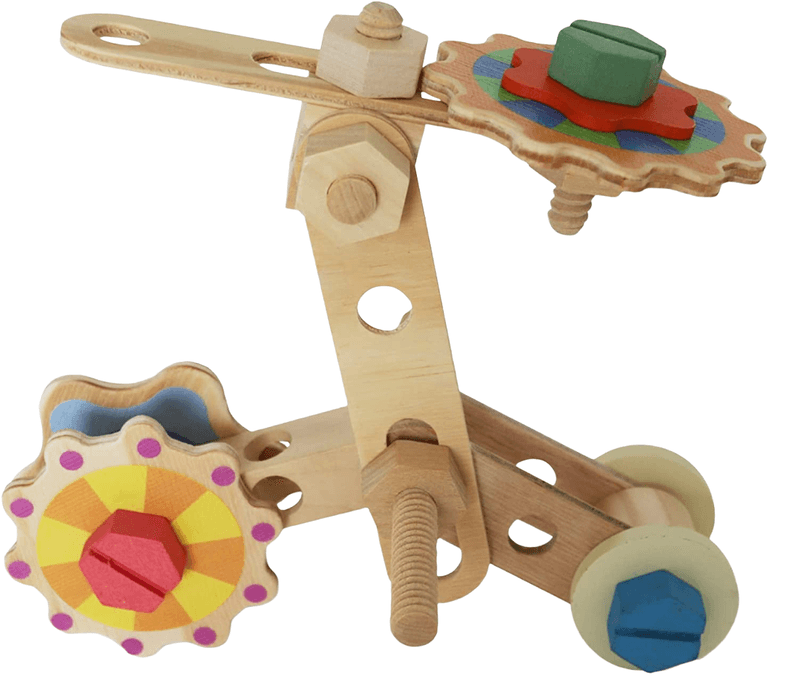 Um brinquedo que mistura arte com mecânica. Contém elementos técnicos, como parafusos e engrenagens, e elementos artísticos, como flores e cores. Encaixando as peças e rosqueando os parafusos, a criança pode criar diferentes formas e máquinas, desenvolvendo a motricidade fina e exercitando a criatividade.