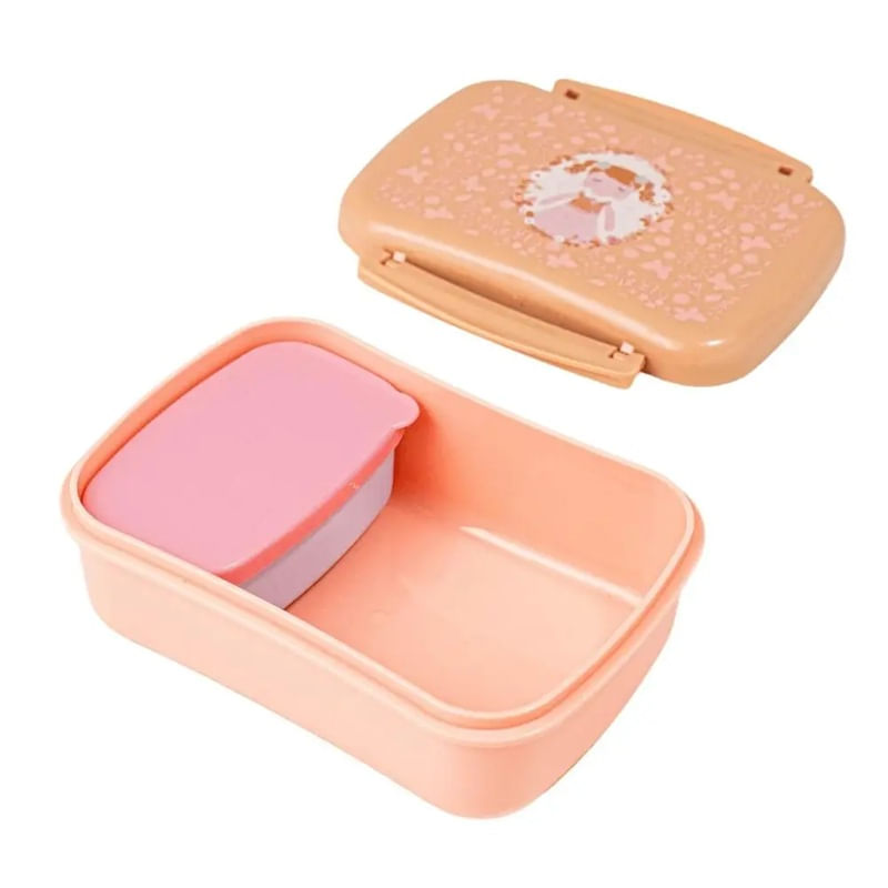 Sua filha vai adorar o Kit Lanche da Metoo, ótimo para levar o lanche para a escola ou para um parque. Este kit de criança grande com capacidade de 600 ml, incentiva a alimentação independente e torna as refeições do dia-a-dia divertidas. Clipes facilitam a abertura e o fechamento do pote, enquanto a vedação de borracha trava a tampa no lugar para conservar os alimentos. Inclui pote com tampa, tampa com vedação em silicone, clipes de abertura fácil em formas divertidas, livre de BPA, PVC e ftalato Pode ser lavado na lava-louças na prateleira superior. Caso coloque no microondas, usar no nivel de calor mais baixo. Não coloque a tampa transparente no micro-ondas. O aniel interno de silicone pode ser removido para limpeza. Características Principais: - Dimensões: 17 x 13 x 5,71 (LxAxP).