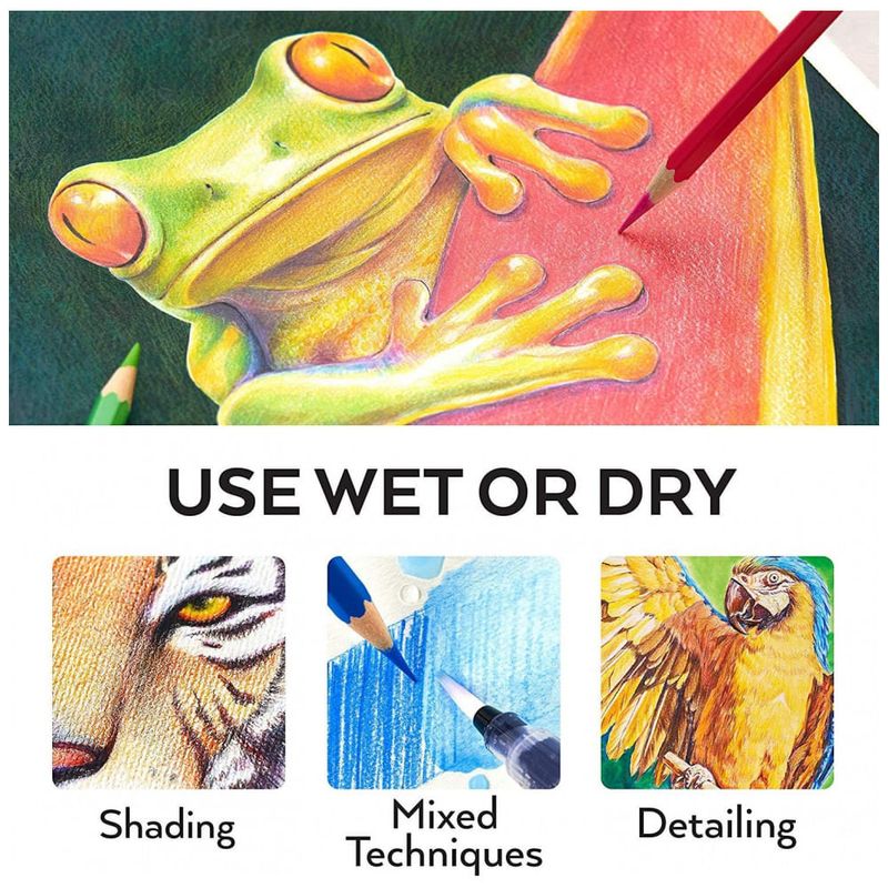 Adicione profundidade às suas obras primas com um conjunto de lápis de cores vivas com apenas um pincel molhado, esses lápis de cor profissionais para artistas permitem que você misture, crie camadas e crie efeitos únicos que dão drama ao seu trabalho artístico.