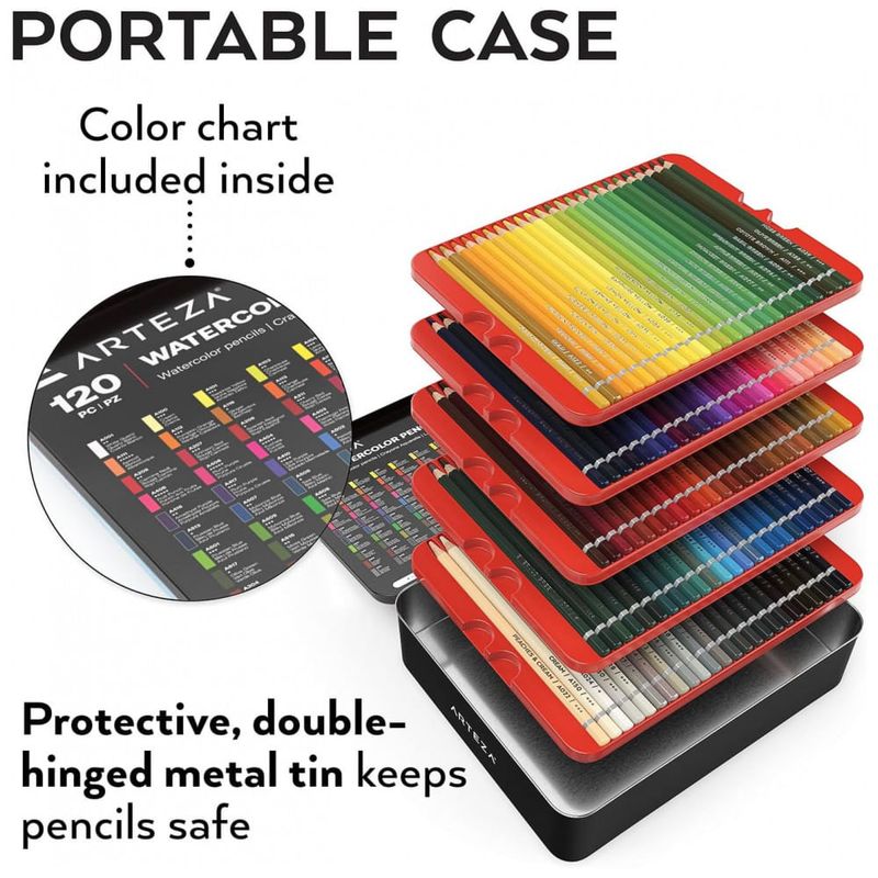 Vem em estojo protetor seu conjunto de lápis aquarela de cor arco íris chega em uma lata resistente que é ideal para zenar e transportar os lápis. Estes lápis de cor de alta qualidade para adultos serão um presente atencioso para qualquer artista.
