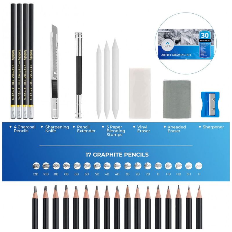 Lápis de sombreamento para desenhar você está procurando Com o Kit de desenho Bellofy você pode finalmente conseguir todas as linhas e tons que você sempre quis Com um Sketchbook gratuito, você pode começar a desenhar assim que abrir o kit de esboço