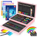 Kit de arte Deluxe de alta qualidade O estojo de arte Deluxe tem tudo o que você precisa para começar a criar em um estojo de madeira compacto Você pode começar a desenhar, colorir e pintar assim que abrir a caixa. Especialmente concebido com 2 grandes cadernos de desenho, 1 livro de colorir, 1 caixa de presente. Grande conjunto de arte para qualquer nível de artista. Este caso de arte é um ótimo presente para adultos e crianças, meninas e meninos, eles vão se divertir muito