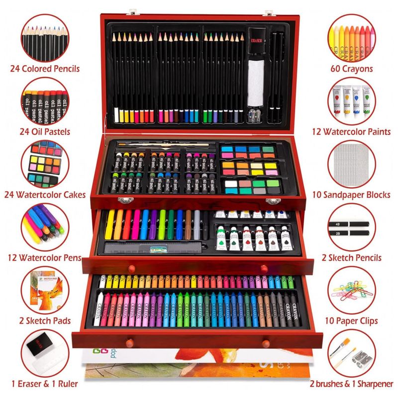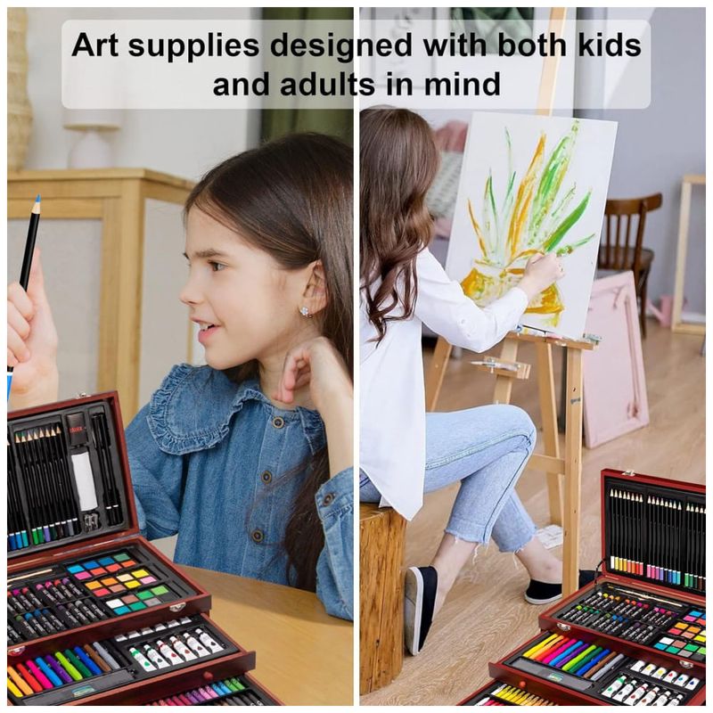 Ferramentas de arte profissionais tanto iniciantes quanto artistas experientes podem usar o conjunto de pintura, independentemente de adultos ou crianças. Nossa excelente caixa de presente de madeira é adequada como presente para crianças e amigos. É a melhor ferramenta para mostrar seu incrível talento de desenho.