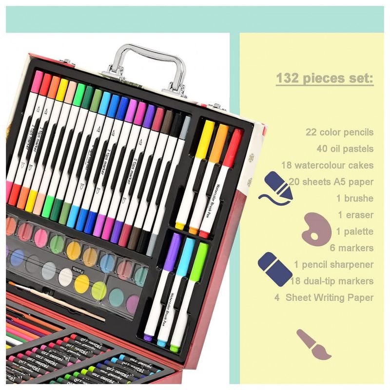 Este conjunto de arte deluxe de 130 peças inclui todas as ferramentas necessárias para um artista criar um belo conteúdo. É adequado para artistas iniciantes e veteranos, crianças e adultos. Este conjunto de arte de alta qualidade é amplamente utilizado por estudantes e artistas profissionais.