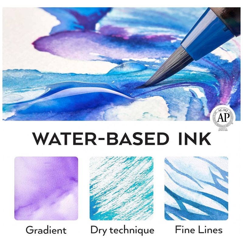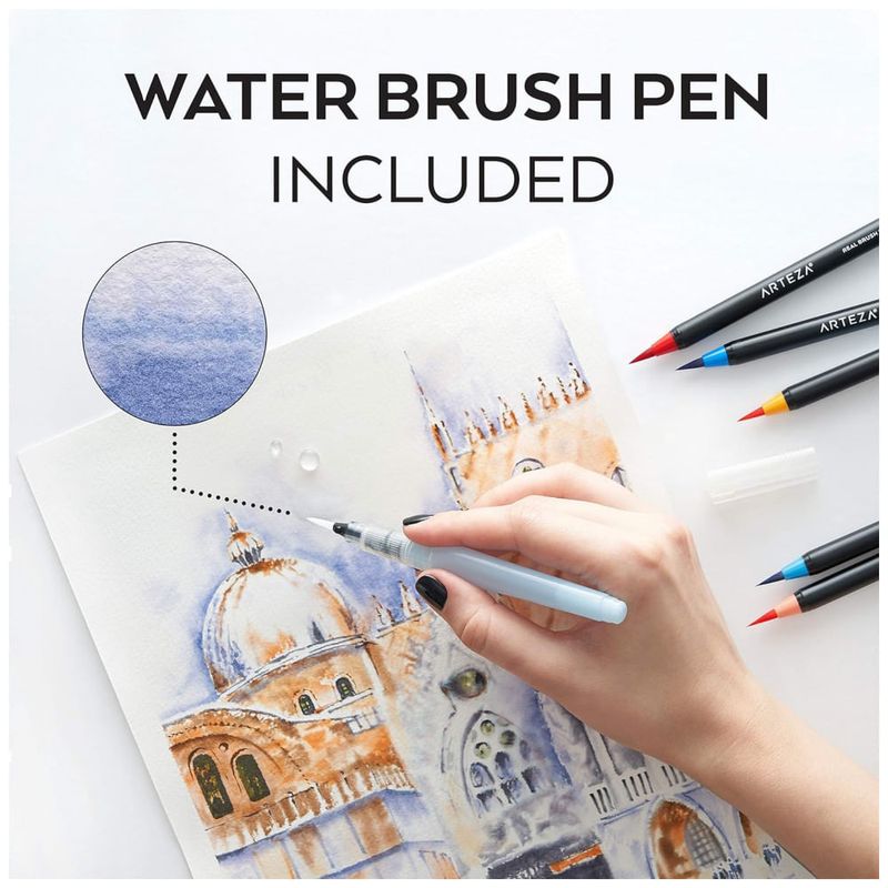 Aberto para uma surpresa abundante Seu organizador vem equipado com 96 marcadores de pincel vívidos e não tóxicos, bem como 1 caneta de pincel de água auto umedecida para pintura em aquarela fácil e conveniente