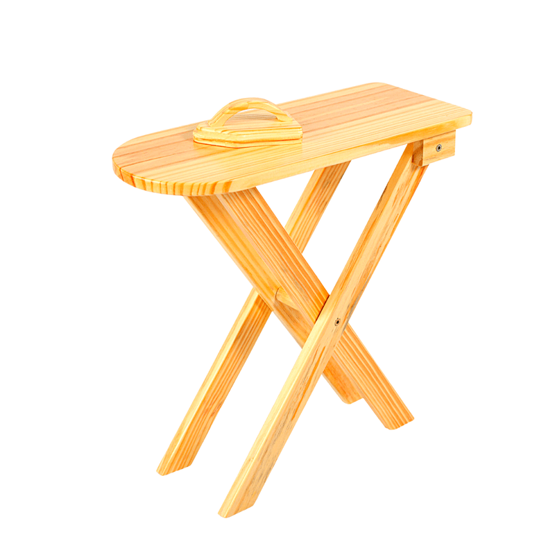 A tábua de passar e o varal são feitos em madeira de pinus com pintura atóxica.
