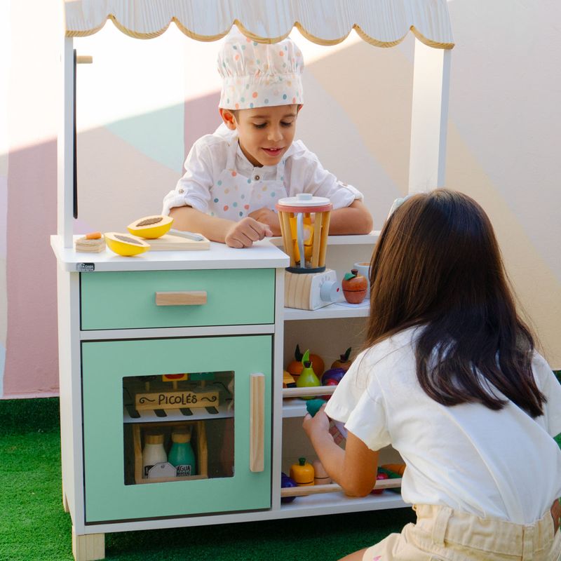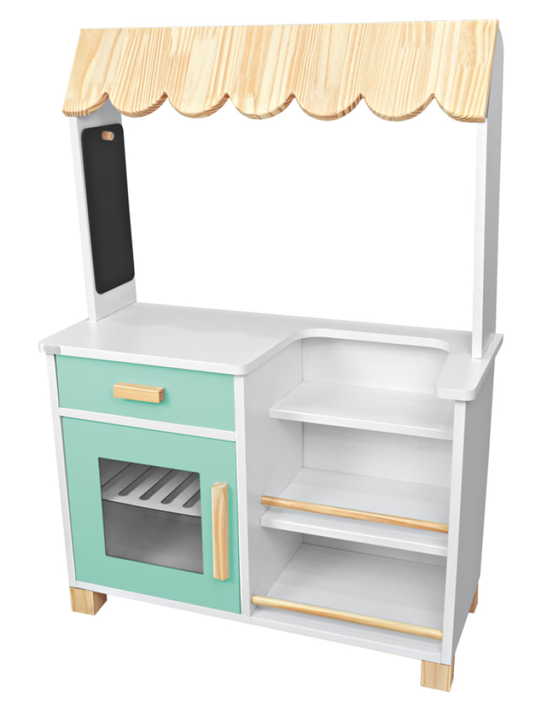Para uns, mercadinho; para outros, quitanda, vendinha, feirinha, cafeteria ou até restaurante... Com o Mercadinho Infantil, a brincadeira vai até onde a imaginação dos pequenos levar! Se você quer proporcionar momentos divertidos e variados com o mesmo brinquedo, essa é a escolha perfeita. Feito em MDF de 15mm, o mesmo material dos móveis planejados, e com detalhes em madeira pinus, ele é resistente e durável, garantindo que acompanhe toda a infância com muita magia e alegria. Equipado com uma geladeira com divisória, prateleiras, uma gavetinha espaçosa para guardar o troco e até uma lousinha para o cardápio do dia ou promoções, este mercadinho é completo! Um verdadeiro aliado para as mamães, pois entretém e diverte as crianças, promovendo brincadeiras lúdicas e saudáveis enquanto reduz o tempo de telas.