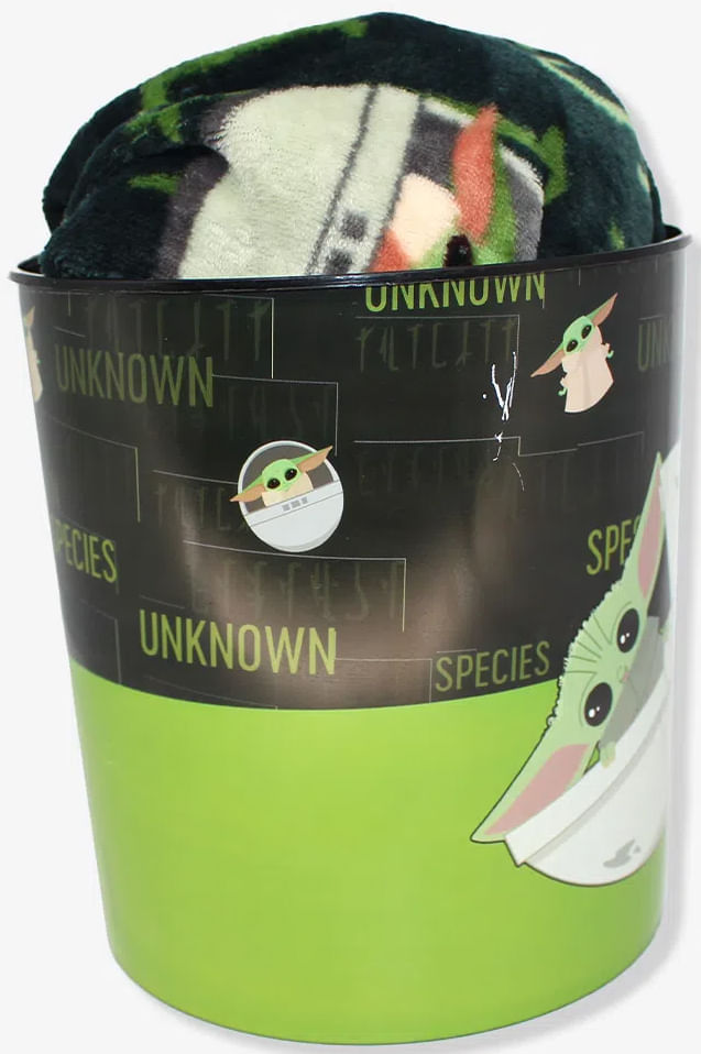 Kit Manta Com Balde Baby Yoda - Star Wars Quer maratonar os seus filmes favoritos, mas não tem companhia? A gente te ajuda! Com esse kit suas sessões em casa vão ficar mais quentinhas e confortáveis! É só pegar seu kit, preparar a pipoca e dar play!