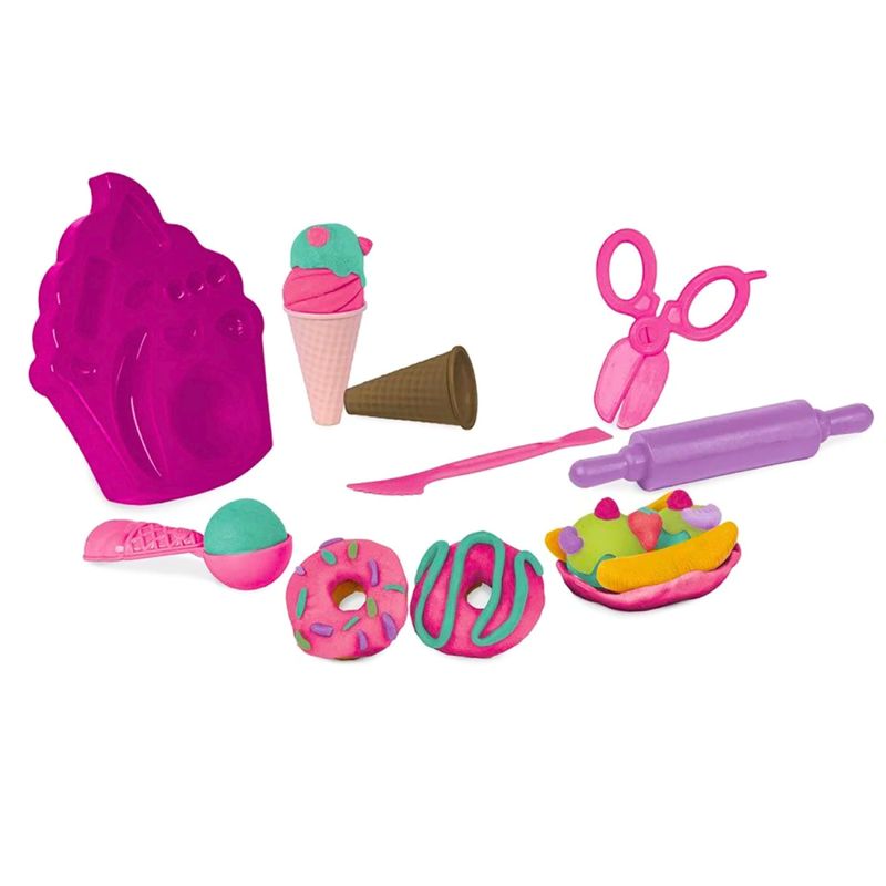 Conteúdo da Embalagem: 01 Molde de massinha, 01 Tesoura, 01 Espatula, 01 Colher de Sorvete, 01 Rolinho, 02 Casquinha de sorvete