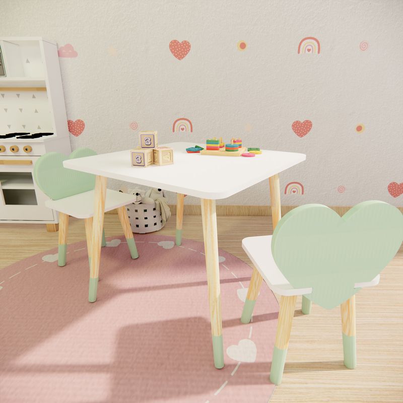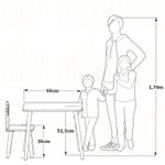 Nosso Conjunto de Mesa e Cadeira Infantil foi projetado com o intuito de dar autonomia e independência as crianças, sendo fabricado em uma altura que eles mesmos conseguem sentar e levantar com facilidade. Além é claro do design super fofo, colorido e lúdico, deixando a brincadeira ainda mais legal! O kit é fabricado em MDF 15mm, e os pés em pinus de alta qualidade, garantindo maior durabilidade e facilitando muito a limpeza. As crianças vão poder brincar com segurança e conforto; pintar, arrumar a mesa para as refeições e até mesmo fazer a tarefa de casa! Temos opções de encostos de cadeira superdivertidas, como Borboleta, Coelho, Coroa, Estrela, Foguete e Urso. Vai ser difícil escolher só um! A diversão começa desde a chegada do produto, onde a família terá um momento de recreação enquanto faz o processo de montagem, desenvolvido de uma forma simples e inteligente, para que apenas com uma chave Philips, o móvel esteja pronto em poucos minutos. Quer dar uma repaginada no espaço da criançada? O nosso kit de mesinha e cadeirinha com certeza é a melhor opção para deixar o seu ambiente encantador, aconchegante e superdivertido! Cadeira super resistente, suporta até 80 kg. Dimensões: Cadeira: Altura até o assento: 30 cm