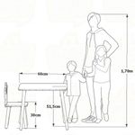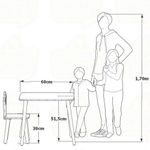 Nosso Conjunto de Mesa e Cadeira Infantil foi projetado com o intuito de dar autonomia e independência as crianças, fabricado em uma altura que eles mesmos conseguem sentar e levantar com facilidade. Além é claro do design super fofo, colorido e lúdico, deixando a brincadeira ainda mais legal! O kit é fabricado em MDF 15mm, e os pés em pinus de alta qualidade, garantindo maior durabilidade e facilitando muito a limpeza. As crianças vão poder brincar com segurança e conforto; pintar, arrumar a mesa para as refeições e até mesmo fazer a tarefa de casa! A diversão começa desde a chegada do produto, onde a família terá um momento de recreação enquanto faz o processo de montagem, desenvolvido de uma forma simples e inteligente, para que apenas com uma chave Philips, o móvel esteja pronto em poucos minutos. Quer dar uma repaginada no espaço da criançada? O nosso kit de mesinha e cadeirinha com certeza é a melhor opção para deixar o seu ambiente encantador, aconchegante e superdivertido! Dimensões: Cadeira: Altura até o assento: 30 cm