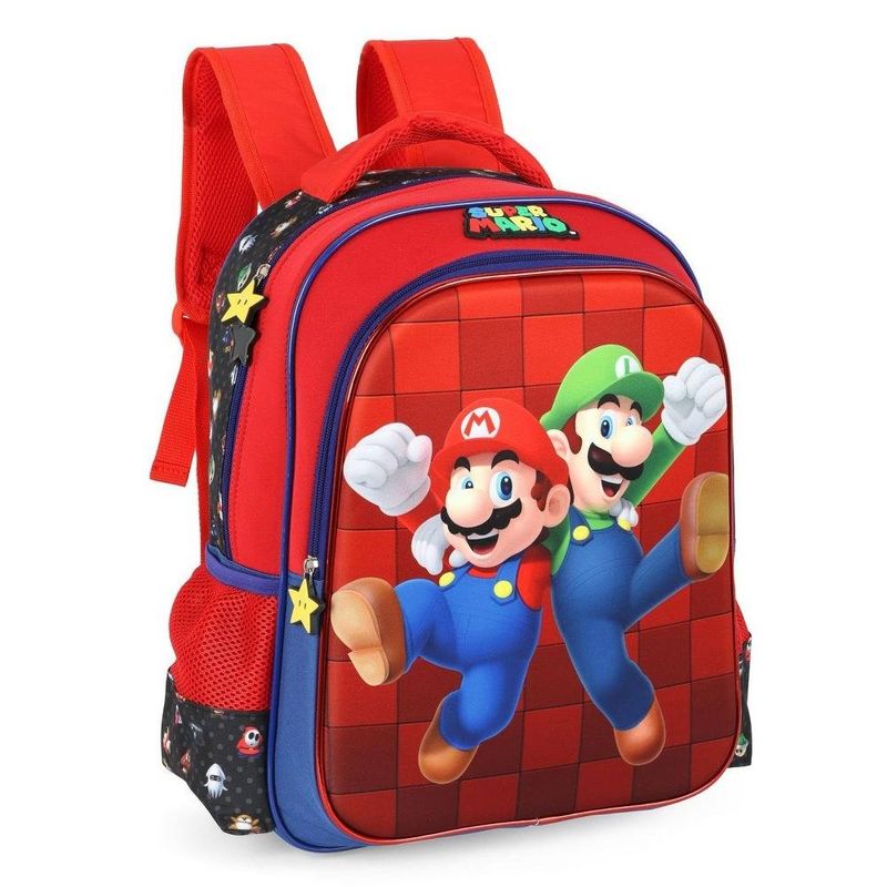 O Kit Mochila de Costas Mario e Luigi + Lancheira Luxcel é perfeito para os pequenos fãs dos irmãos mais famosos dos videogames! Com um design vibrante e cheio de personalidade, esse kit une praticidade, conforto e o charme do Mario e do Luigi, ideal para tornar a rotina escolar ainda mais divertida.