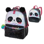 O Kit Mochila de Costas Pack Me Panda + Lancheira Térmica Pacific é perfeito para as crianças que adoram pandas e querem brilhar com um estilo único. Com detalhes encantadores como orelhinhas de pompom, paetês, pandinhas coloridos e um chaveiro de pompom, esse conjunto traz diversão e praticidade para a rotina escolar.